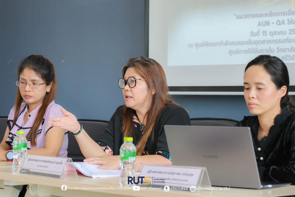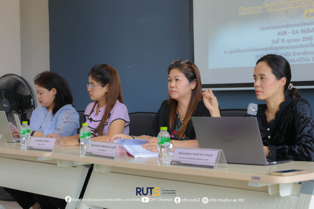 วันพุธที่ 15 ตุลาคม 2568 ณ ศูนย์พัฒนากำลังคนรองรับอุตสาหกรรมท่องเที่ยวชายฝั่งวิถีใหม่ด้วยนวัตกรรมและเทคโนโลยี ศูนย์ภาคใต้อันดามัน วิทยาลัยการโรงแรมและการท่องเที่ยว มหาวิทยาลัยเทคโนโลยีราชมงคลศรีวิชัย วิทยาเขตตรัง จัดกิจกรรม “การจัดการความรู้ (Knowledge Management: KM)” ประจำปีการศึกษา 2568 หัวข้อ “แนวทางและหลักการเขียนรายงานการประเมินตนเองตามเกณฑ์ AUN-QA ให้เป็นไปตามเป้าหมายที่กำหนด”