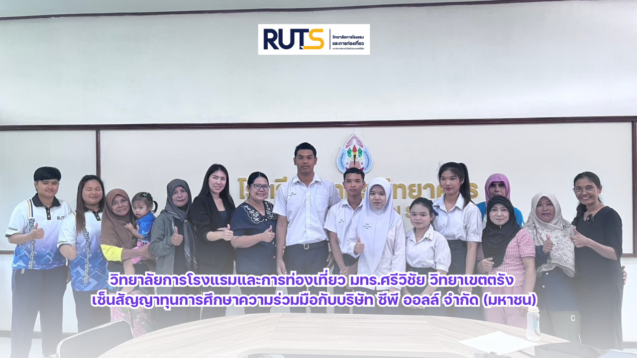 ช่วงเดือนตุลาคม 2568 ผศ.นุชนาถ ทับครุฑ ประธานหลักสูตรสาขาวิชาการจัดการและการพัฒนาธุรกิจ พร้อมด้วยคณาจารย์ประจำหลักสูตร ได้ดำเนินการเซ็นสัญญาทุนการศึกษาจำนวน 7 ทุน ภายใต้โครงการความร่วมมือระหว่างบริษัท ซีพี ออลล์ จำกัด (มหาชน) และวิทยาลัยการโรงแรมและการท่องเที่ยว มหาวิทยาลัยเทคโนโลยีราชมงคลศรีวิชัย วิทยาเขตตรัง