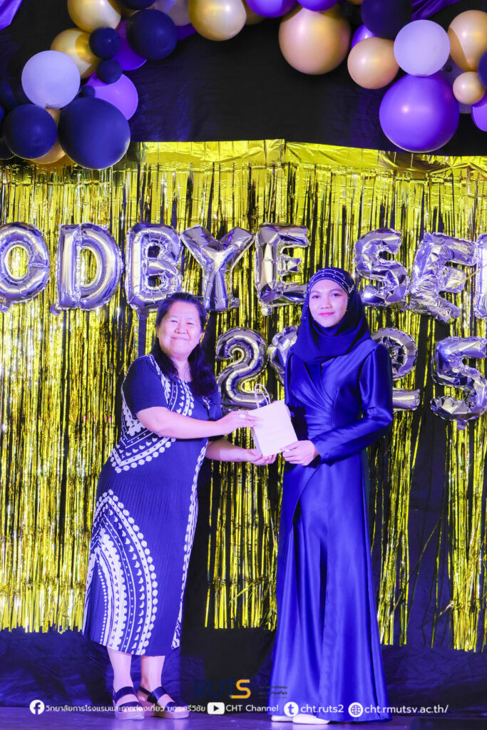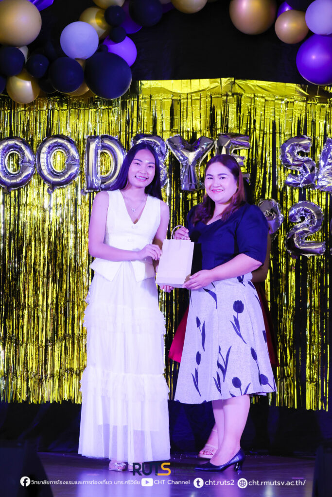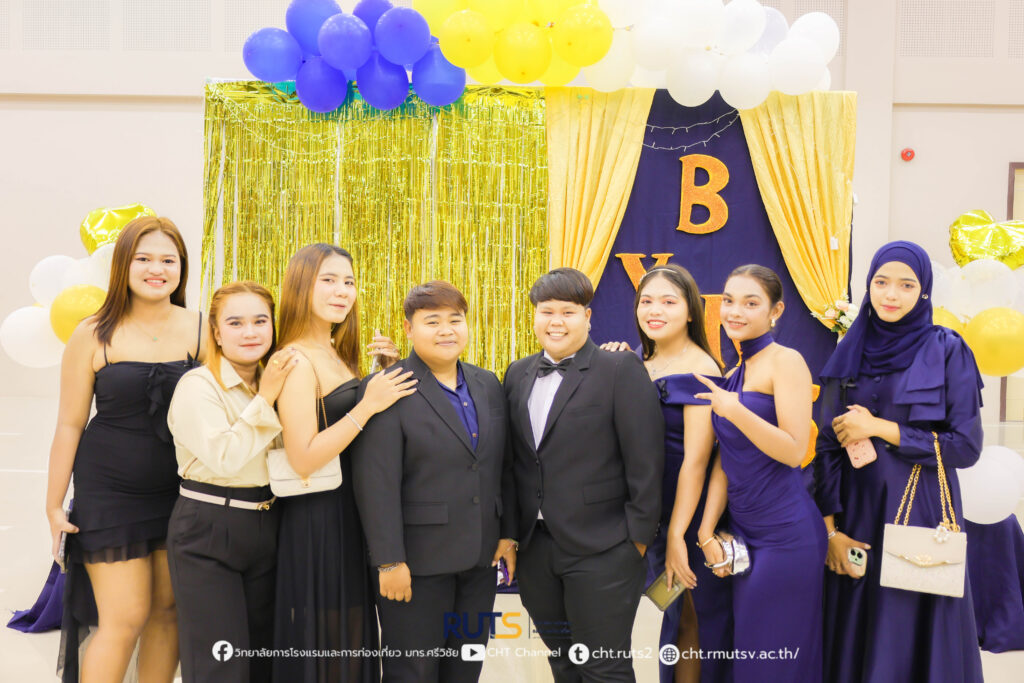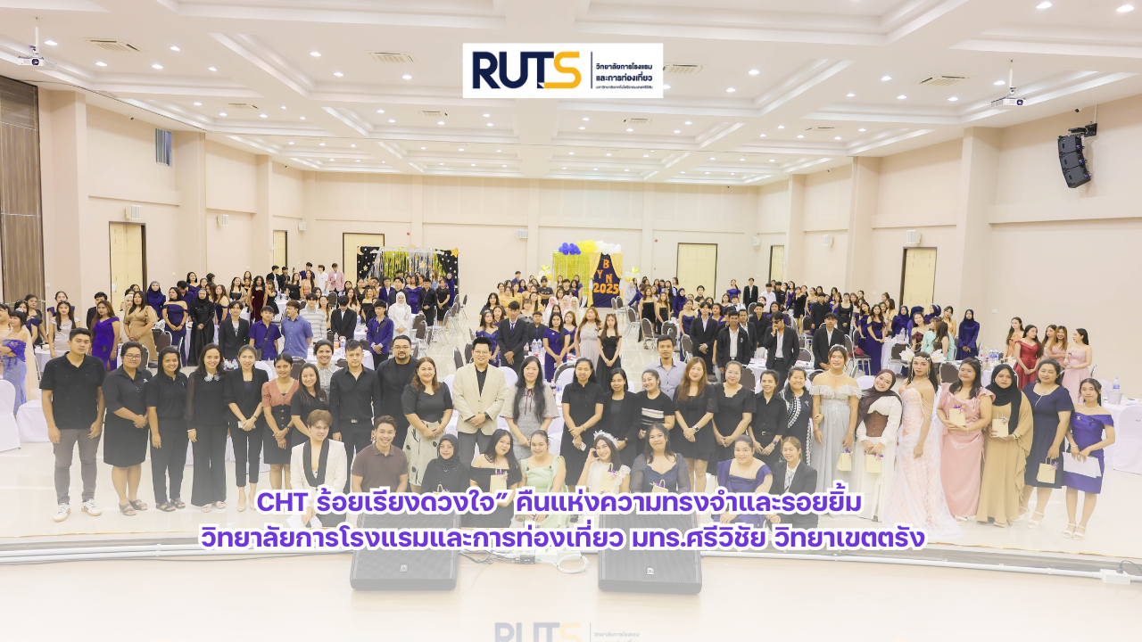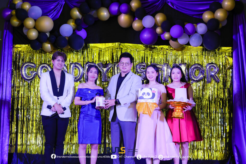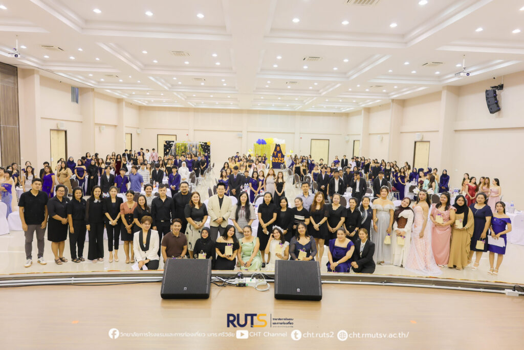 เมื่อค่ำวันที่ 27 ตุลาคม 2568 ณ ห้องประชุมปัญญาอนุสรณ์ วิทยาลัยการโรงแรมและการท่องเที่ยว มหาวิทยาลัยเทคโนโลยีราชมงคลศรีวิชัย วิทยาเขตตรัง ได้จัดกิจกรรม “CHT ร้อยเรียงดวงใจ (Goodbye Senior)” ภายใต้คอนเซปต์ “Midnight Elegance” เพื่อร่วมส่งความรัก ความอบอุ่น และความทรงจำดี ๆ ให้แก่นักศึกษาชั้นปีสุดท้าย โดยกิจกรรมครั้งนี้จัดขึ้นโดย งานพัฒนานักศึกษาและศิษย์เก่าสัมพันธ์