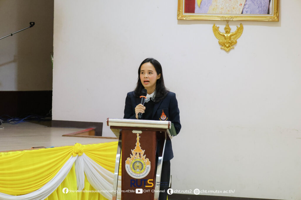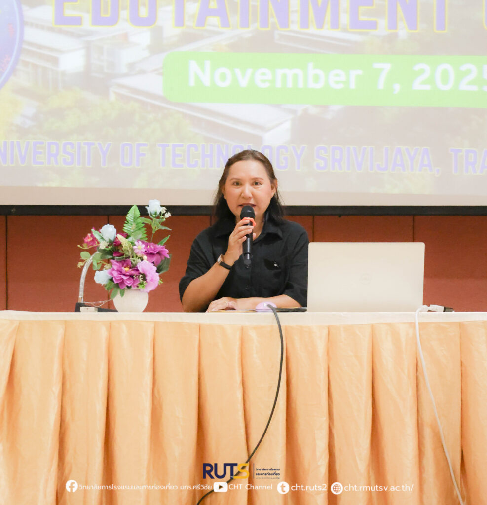 วันที่ 7 พฤศจิกายน 2568 ณ อาคารเฉลิมพระเกียรติฯ และพิพิธภัณฑ์สัตว์น้ำราชมงคล มหาวิทยาลัยเทคโนโลยีราชมงคลศรีวิชัย วิทยาเขตตรัง หลักสูตรศิลปศาสตรบัณฑิต สาขาวิชาภาษาอังกฤษเพื่อการสื่อสารนานาชาติ วิทยาลัยการโรงแรมและการท่องเที่ยว จัดโครงการ “English Edutainment Camp” เพื่อส่งเสริมและพัฒนาทักษะการใช้ภาษาอังกฤษในชีวิตประจำวันของนักเรียนระดับประถมศึกษาชั้นปีที่ 1 -4โดยได้รับเกียรติจาก ผู้ช่วยศาสตราจารย์ฟ้าพิไล ทวีสินโสภา ผู้อำนวยการวิทยาลัยการโรงแรมและการท่องเที่ยว มอบหมายให้ อาจารย์ปิยะนารถ อรรคไกรสีห์ ประธานหลักสูตรศิลปศาสตรบัณฑิต สาขาวิชาภาษาอังกฤษเพื่อการสื่อสารนานาชาติ เป็นประธานในพิธีเปิด และได้รับเกียรติจาก ผู้ช่วยศาสตราจารย์สุภาพร เจริญสุข กล่าวรายงานวัตถุประสงค์ของโครงการ