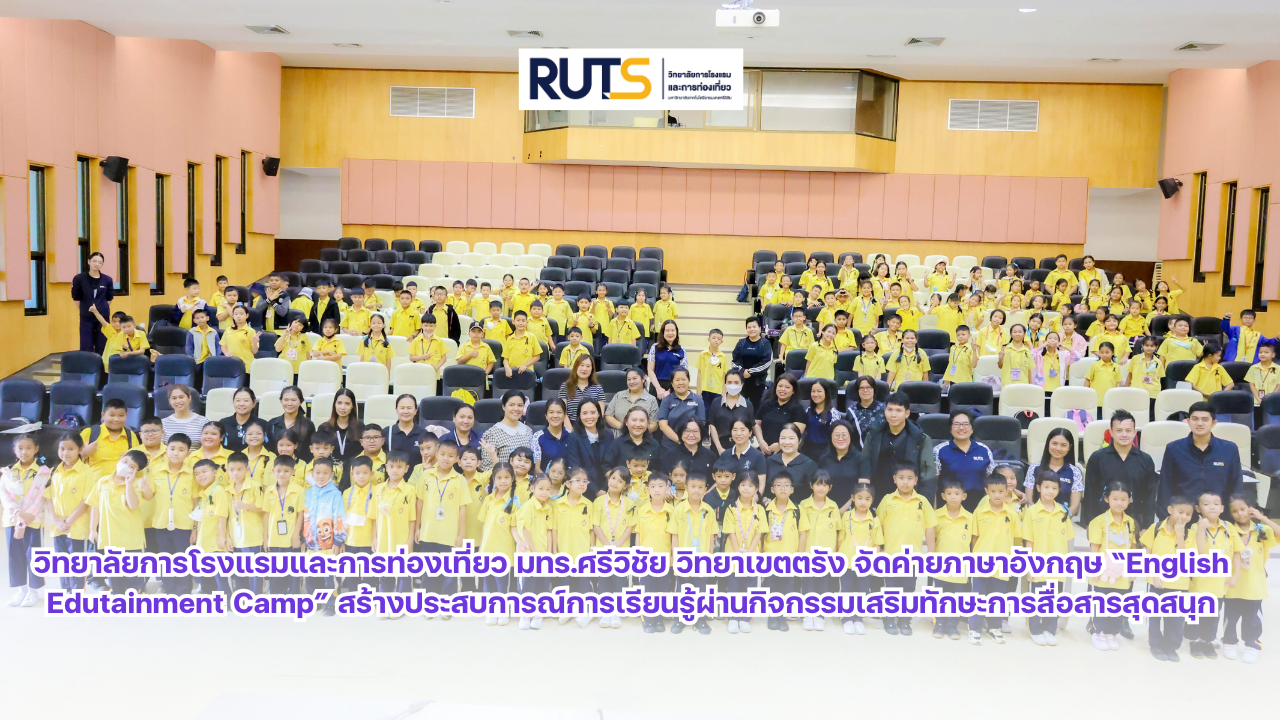 วันที่ 7 พฤศจิกายน 2568 ณ อาคารเฉลิมพระเกียรติฯ และพิพิธภัณฑ์สัตว์น้ำราชมงคล มหาวิทยาลัยเทคโนโลยีราชมงคลศรีวิชัย วิทยาเขตตรัง หลักสูตรศิลปศาสตรบัณฑิต สาขาวิชาภาษาอังกฤษเพื่อการสื่อสารนานาชาติ วิทยาลัยการโรงแรมและการท่องเที่ยว จัดโครงการ “English Edutainment Camp” เพื่อส่งเสริมและพัฒนาทักษะการใช้ภาษาอังกฤษในชีวิตประจำวันของนักเรียนระดับประถมศึกษาชั้นปีที่ 1 -4โดยได้รับเกียรติจาก ผู้ช่วยศาสตราจารย์ฟ้าพิไล ทวีสินโสภา ผู้อำนวยการวิทยาลัยการโรงแรมและการท่องเที่ยว มอบหมายให้ อาจารย์ปิยะนารถ อรรคไกรสีห์ ประธานหลักสูตรศิลปศาสตรบัณฑิต สาขาวิชาภาษาอังกฤษเพื่อการสื่อสารนานาชาติ เป็นประธานในพิธีเปิด และได้รับเกียรติจาก ผู้ช่วยศาสตราจารย์สุภาพร เจริญสุข กล่าวรายงานวัตถุประสงค์ของโครงการ