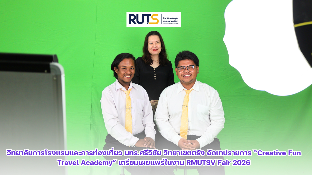 เมื่อวันที่ 10 พฤศจิกายน 2568 ณ ห้องไลฟ์สด วิทยาลัยการโรงแรมและการท่องเที่ยว มหาวิทยาลัยเทคโนโลยีราชมงคลศรีวิชัย วิทยาเขตตรัง หลักสูตรศิลปศาสตรบัณฑิต สาขาวิชาการท่องเที่ยวและการบริการ ได้จัดการอัดเทปวิดีโอรายการ “Creative Fun Travel Academy” เพื่อเตรียมเผยแพร่ในงานนิทรรศการวิชาการราชมงคลศรีวิชัยแฟร์ โดยเริ่มบันทึกเทปเวลา 12.05 น.