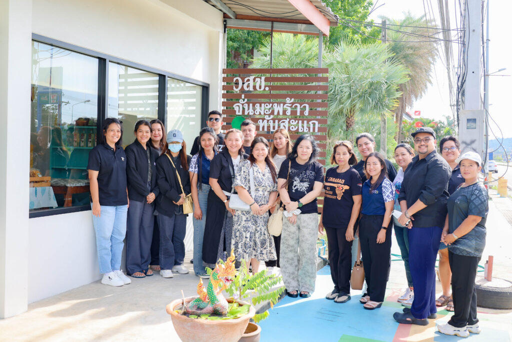 ในการนี้ คณะผู้บริหารและบุคลากรยังได้ศึกษาดูงานด้านการจัดการท่องเที่ยวเชิงชุมชน ณ กลุ่มวิสาหกิจชุมชนจั่นมะพร้าวทับสะแก จังหวัดประจวบคีรีขันธ์ โดยเน้นการเรียนรู้กระบวนการผลิตและพัฒนาผลิตภัณฑ์ท้องถิ่น เช่น มะพร้าวเคลือบช็อกโกแลตและรสชาติหลากหลาย ตลอดจนกระบวนการบริหารจัดการผลิตภัณฑ์ให้มีคุณภาพได้มาตรฐาน รวมถึงแนวทางการพัฒนาสินค้าชุมชนสู่ผลิตภัณฑ์สร้างสรรค์ที่สามารถขยายตลาดได้อย่างยั่งยืน นอกจากนี้ยังได้ศึกษาแนวทางการจัดกิจกรรมท่องเที่ยวเชิงประสบการณ์ที่สะท้อนอัตลักษณ์ ภูมิปัญญา และวัฒนธรรมของชุมชน อันเป็นองค์ประกอบสำคัญที่สามารถนำมาประยุกต์ใช้ในการพัฒนากิจกรรมการเรียนการสอนด้านการท่องเที่ยว การบริการ และการเสริมสร้างความร่วมมือระหว่างสถาบันการศึกษากับชุมชนในอนาคต