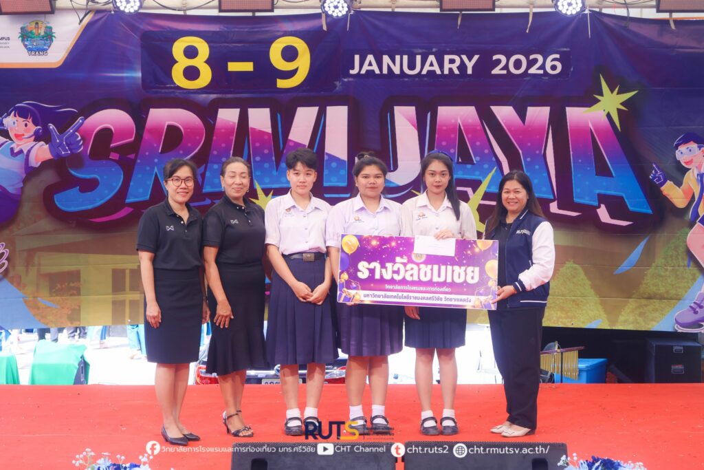 วิทยาลัยการโรงแรมและการท่องเที่ยว มหาวิทยาลัยเทคโนโลยีราชมงคลศรีวิชัย วิทยาเขตตรัง เข้าร่วมจัดนิทรรศการวิชาการ “ราชมงคลศรีวิชัยแฟร์” ระหว่างวันที่ 8–9 มกราคม 2569 ณ อาคารเฉลิมพระเกียรติ 80 พรรษา 5 ธันวาคม 2550 เพื่อแสดงศักยภาพด้านการจัดการเรียนการสอนและผลงานทางวิชาการ พร้อมเปิดรับสมัครนักศึกษาใหม่ ประจำปีการศึกษา 2569
