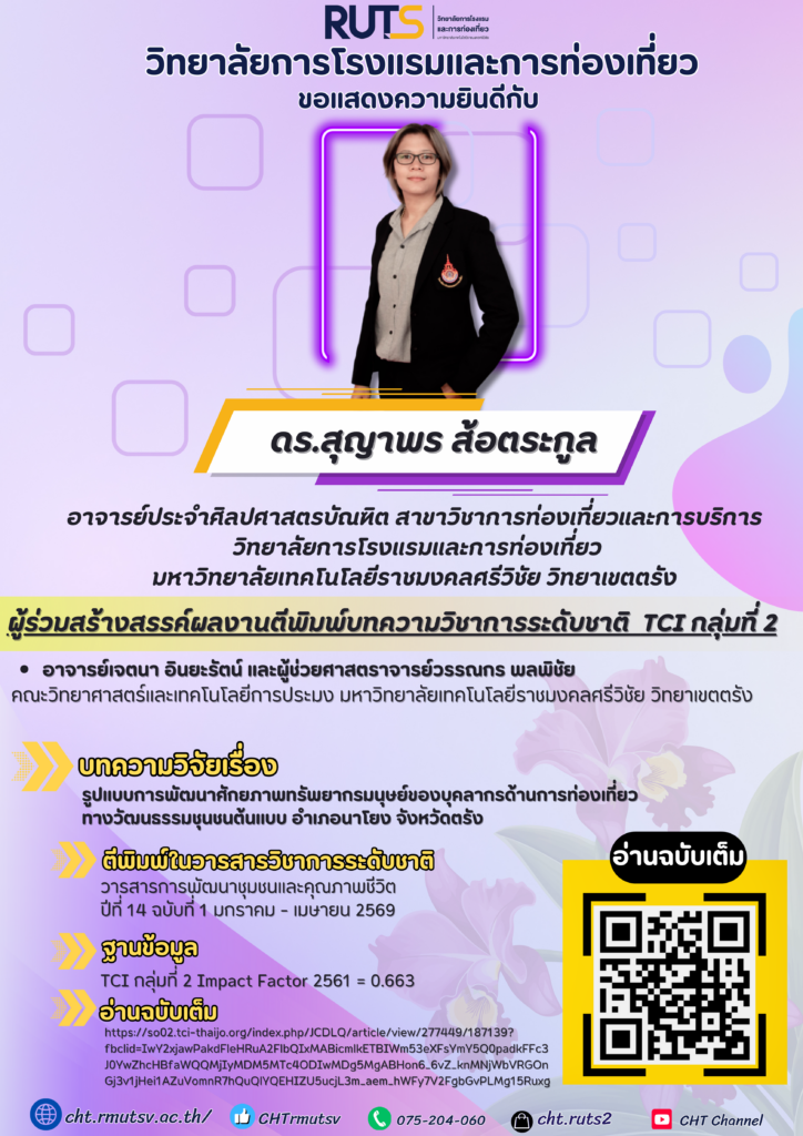 💜#วิทยาลัยการโรงแรมและการท่องเที่ยว มทร.ศรีวิชัย วิทยาเขตตรัง ขอแสดงความยินดีกับ