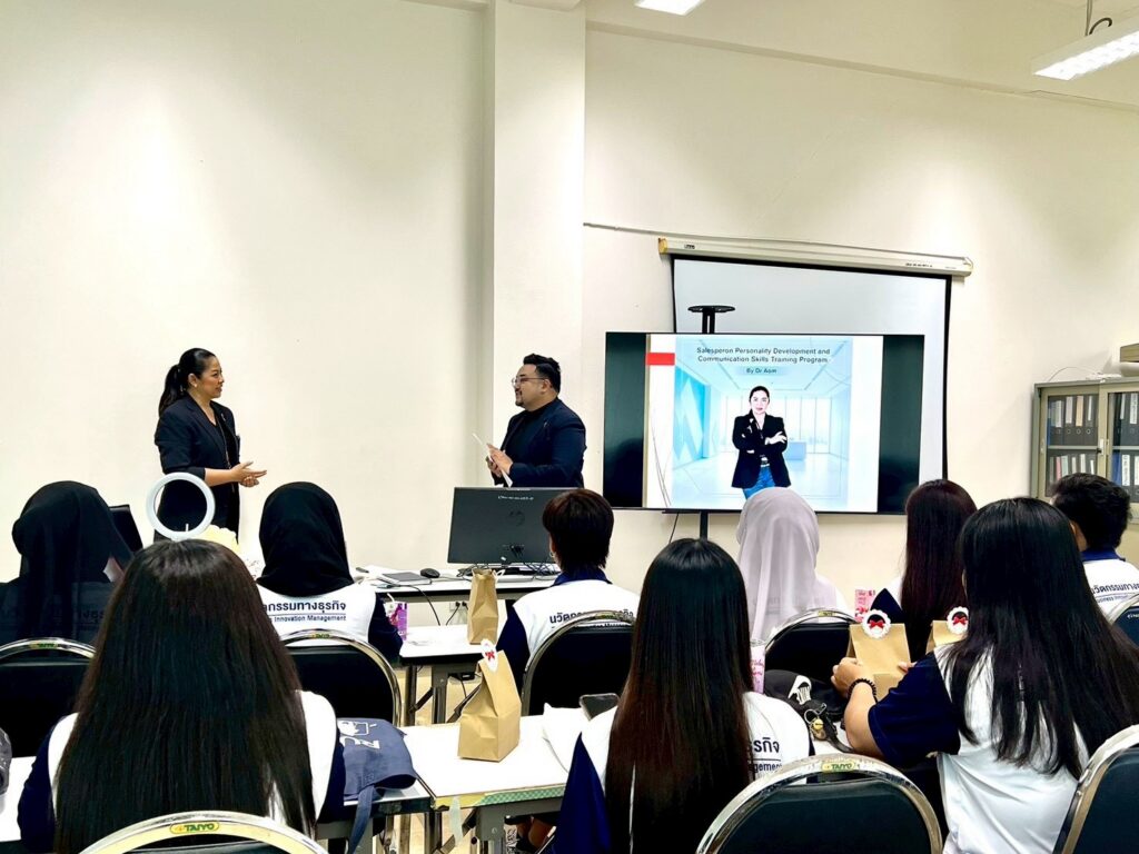 โครงการดังกล่าวได้รับเกียรติจาก ผู้ช่วยศาสตราจารย์ ดร.ชารินี ใจเอื้อ นักวิชาการอิสระ เป็นวิทยากรถ่ายทอดองค์ความรู้และประสบการณ์ เพื่อเสริมสร้างศักยภาพให้นักศึกษามีความพร้อมต่อการทำงานจริง โดยมุ่งเน้นการพัฒนาทักษะด้านบุคลิกภาพ การสื่อสาร และการนำเสนอสำหรับนักขาย ซึ่งเป็นทักษะสำคัญที่สอดคล้องกับความต้องการของตลาดแรงงานในปัจจุบัน โดยมีคณาจารย์และนักศึกษาเข้าร่วมกิจกรรมอย่างพร้อมเพรียง บรรยากาศเป็นไปด้วยความสนใจและการมีส่วนร่วมอย่างสร้างสรรค์