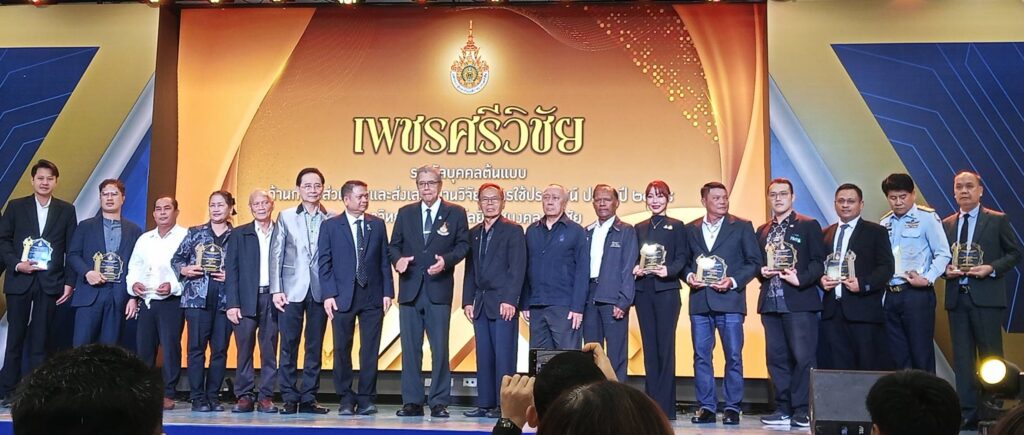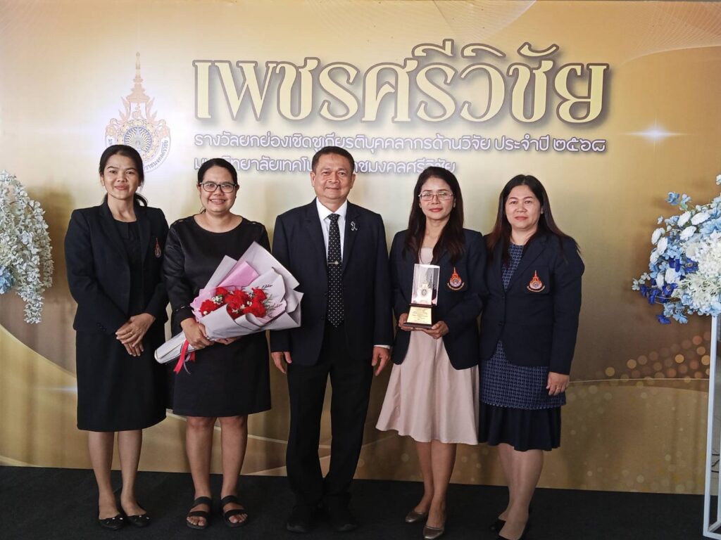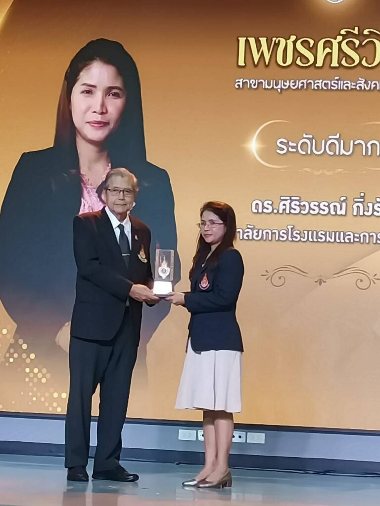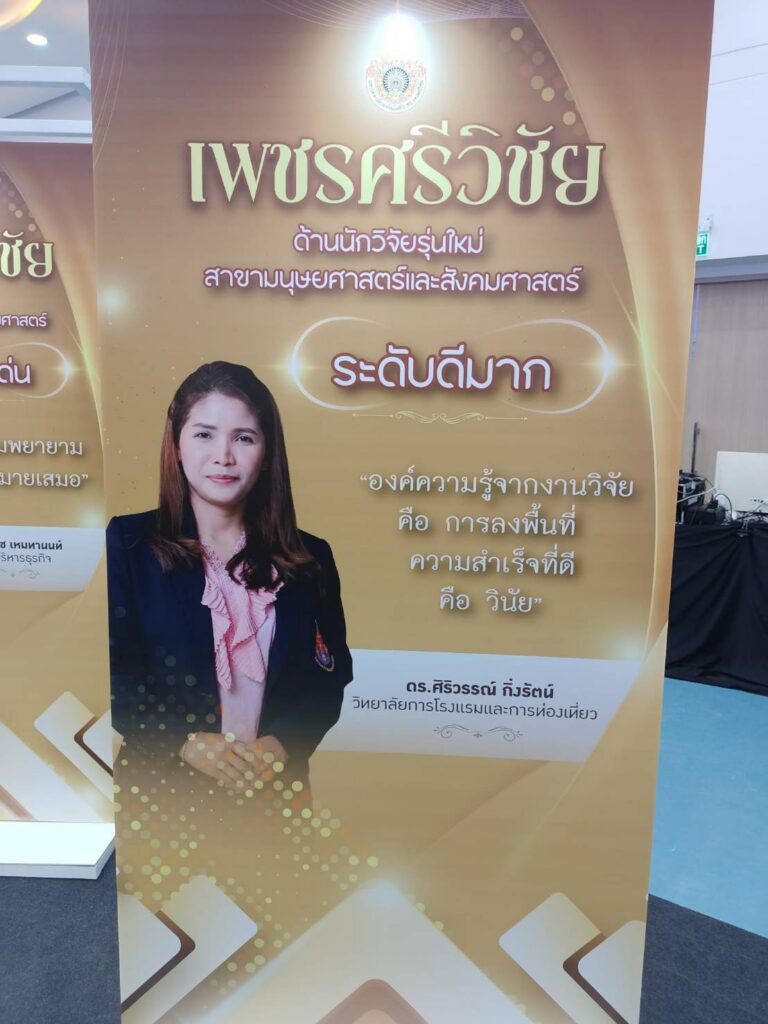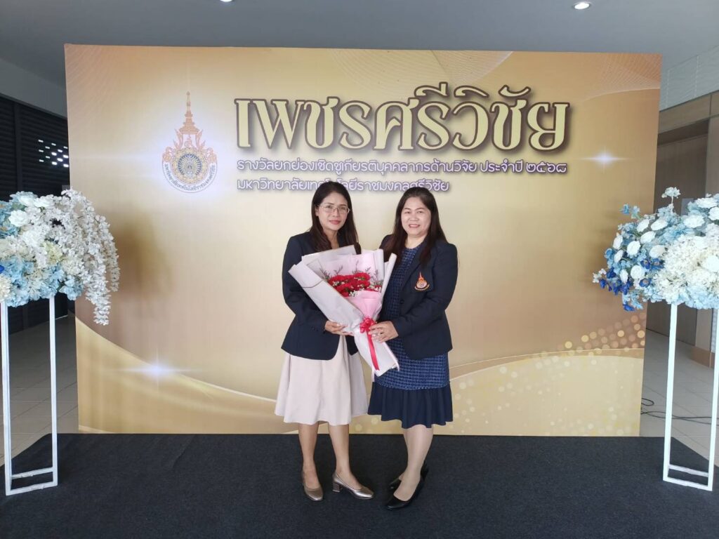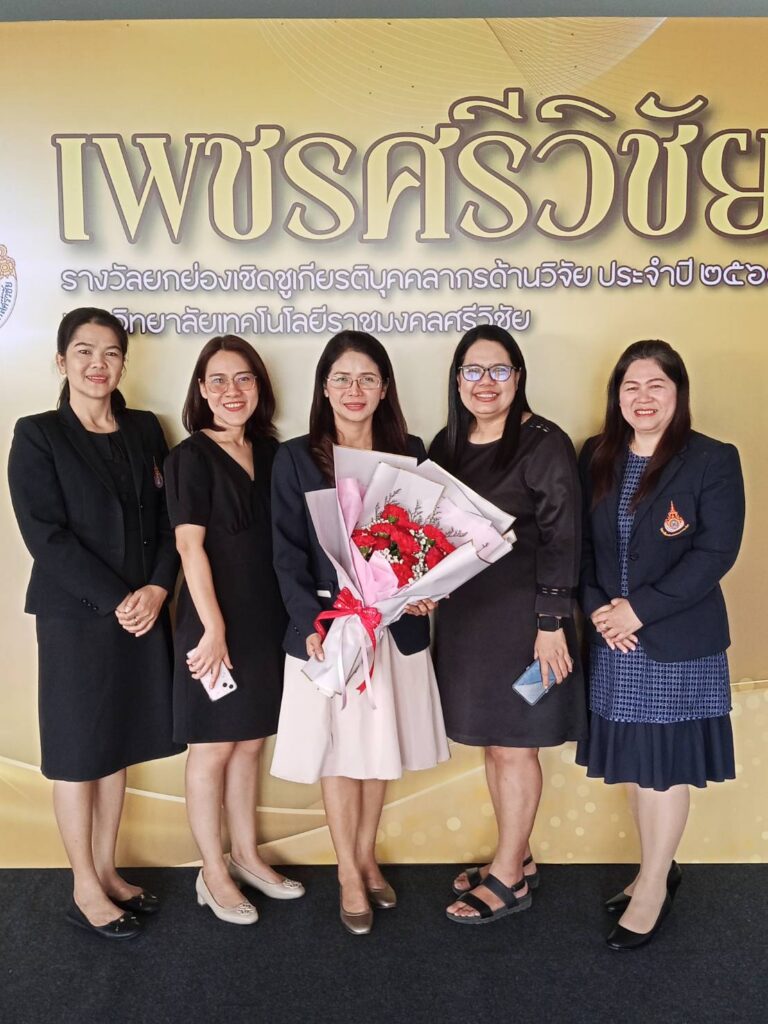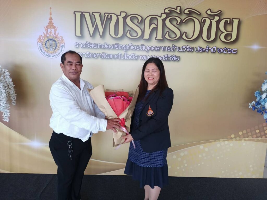ในโอกาสนี้ ผู้ช่วยศาสตราจารย์ฟ้าพิไล ทวีสินโสภา ผู้อำนวยการวิทยาลัยการโรงแรมและการท่องเที่ยว มอบหมายให้ ผู้ช่วยศาสตราจารย์ศุกพิชญาณ์ บุญเกื้อ รองผู้อำนวยการฝ่ายวิชาการและวิจัย เข้าร่วมกิจกรรม พร้อมด้วยคณาจารย์และบุคลากร เข้าร่วมเป็นเกียรติในพิธีมอบรางวัลแก่บุคลากรดีเด่นด้านการวิจัย สำหรับผลการประกาศรางวัล “เพชรศรีวิชัย” มหาวิทยาลัยเทคโนโลยีราชมงคลศรีวิชัย ประจำปี 2568 รางวัลเพชรศรีวิชัย ด้านนักวิจัยรุ่นใหม่ สาขาวิทยาศาสตร์และเทคโนโลยี ระดับดีมาก ได้แก่ ดร.ศิริวรรณ์ กิ่งรัตน์ อาจารย์ประจำวิทยาลัยการโรงแรมและการท่องเที่ยว