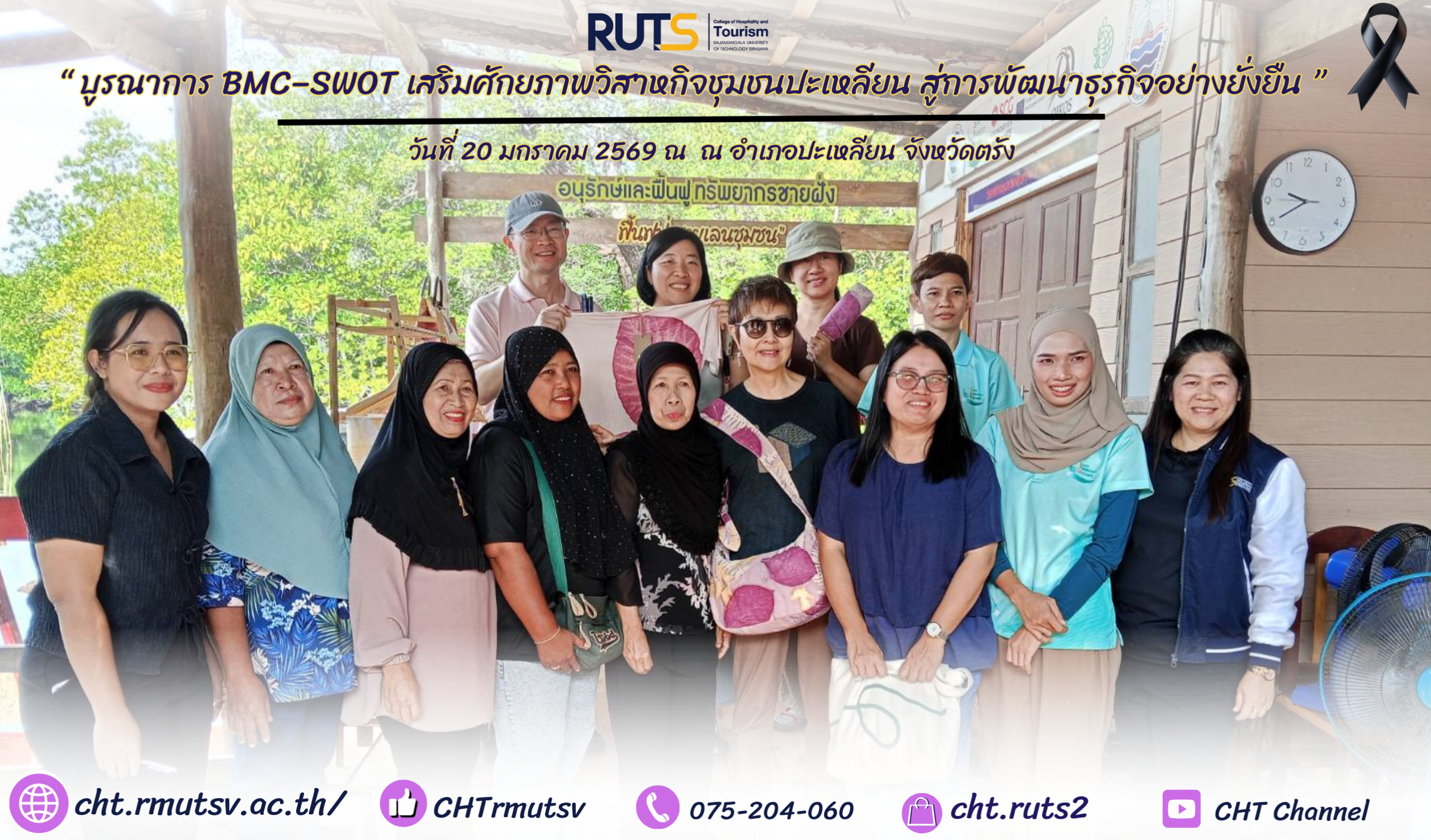 เมื่อวันที่ 20 มกราคม 2569 ณ อำเภอปะเหลียน จังหวัดตรัง ผู้ช่วยศาสตราจารย์ศุกพิชญาณ์ บุญเกื้อ รองผู้อำนวยการฝ่ายวิชาการและวิจัย และผู้ช่วยศาสตราจารย์นุชนาถ ทับครุฑ ประธานหลักสูตรบริหารธุรกิจบัณฑิต สาขาวิชาการจัดการและการพัฒนาธุรกิจ ร่วมเป็นวิทยากรถ่ายทอดองค์ความรู้ด้านการพัฒนาธุรกิจชุมชน โดยบรรยายในหัวข้อ การประยุกต์ใช้ Business Model Canvas (BMC) ควบคู่กับการวิเคราะห์เชิงกลยุทธ์ด้วย SWOT Analysis
