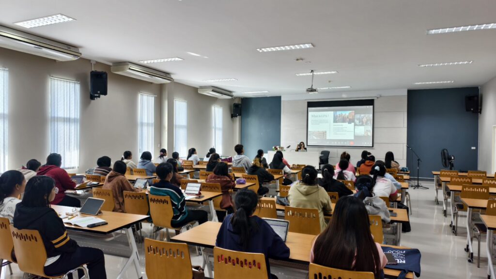 ภายในกิจกรรมได้รับเกียรติจาก ผู้ช่วยศาสตราจารย์ระริน เครือวรพันธุ์ ประธานหลักสูตรบัญชีบัณฑิต เป็นวิทยากรบรรยายในหัวข้อ “การเตรียมความพร้อมสู่การเป็นผู้สอบ CPA” และ “รายละเอียดที่ต้องเตรียมพร้อมในการสอบ และการฝึกทำงาน” ถ่ายทอดองค์ความรู้เชิงลึกควบคู่กับประสบการณ์จริงจากสายวิชาชีพ พร้อมจัดกิจกรรมฝึกปฏิบัติและการทำแบบทดสอบด้านการสอบบัญชี เพื่อให้นักศึกษาได้ทดลองประเมินศักยภาพและเตรียมความพร้อมของตนเองอย่างเป็นรูปธรรม
