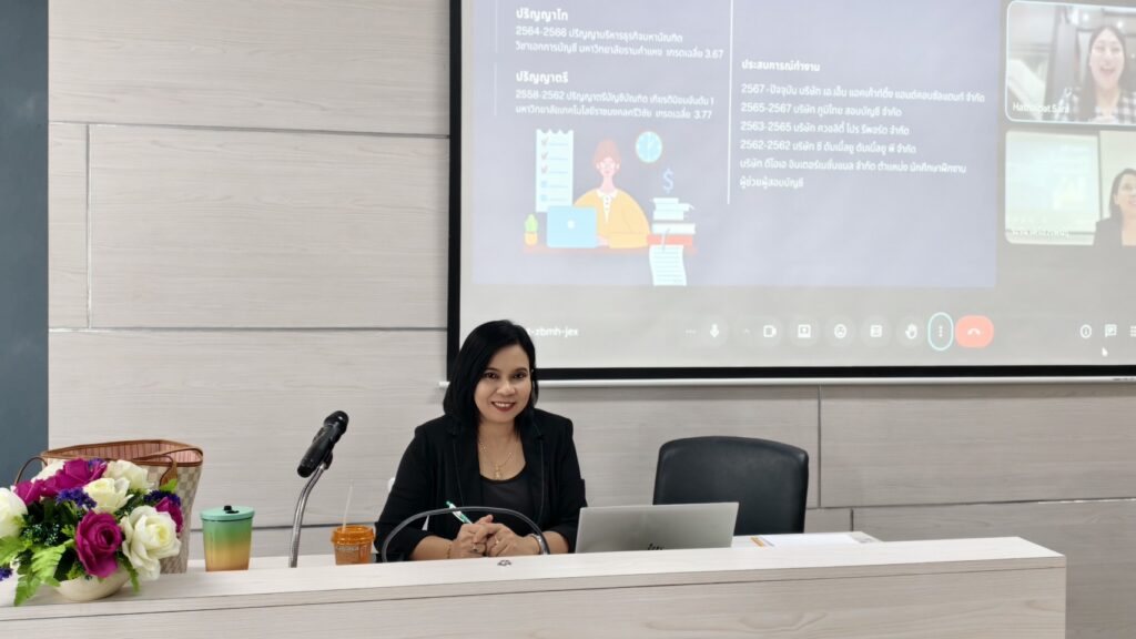 นอกจากนี้ ยังได้รับเกียรติจาก นางสาวหทัยภัทร ศรีเจริญ ผู้ช่วยผู้สอบบัญชี บริษัท เอ.เอ็น. แอคเค้าท์ติ้ง แอนด์ คอนซัลแตนท์ จำกัด ซึ่งเป็นศิษย์เก่าหลักสูตรบัญชีบัณฑิต เข้าร่วมแลกเปลี่ยนเรียนรู้และถ่ายทอดประสบการณ์การทำงานจริงในสายวิชาชีพด้านการสอบบัญชี พร้อมให้คำแนะนำเกี่ยวกับการเตรียมตัวก่อนเข้าสู่ตลาดแรงงาน อันเป็นประโยชน์ต่อการวางแผนเส้นทางอาชีพของนักศึกษา