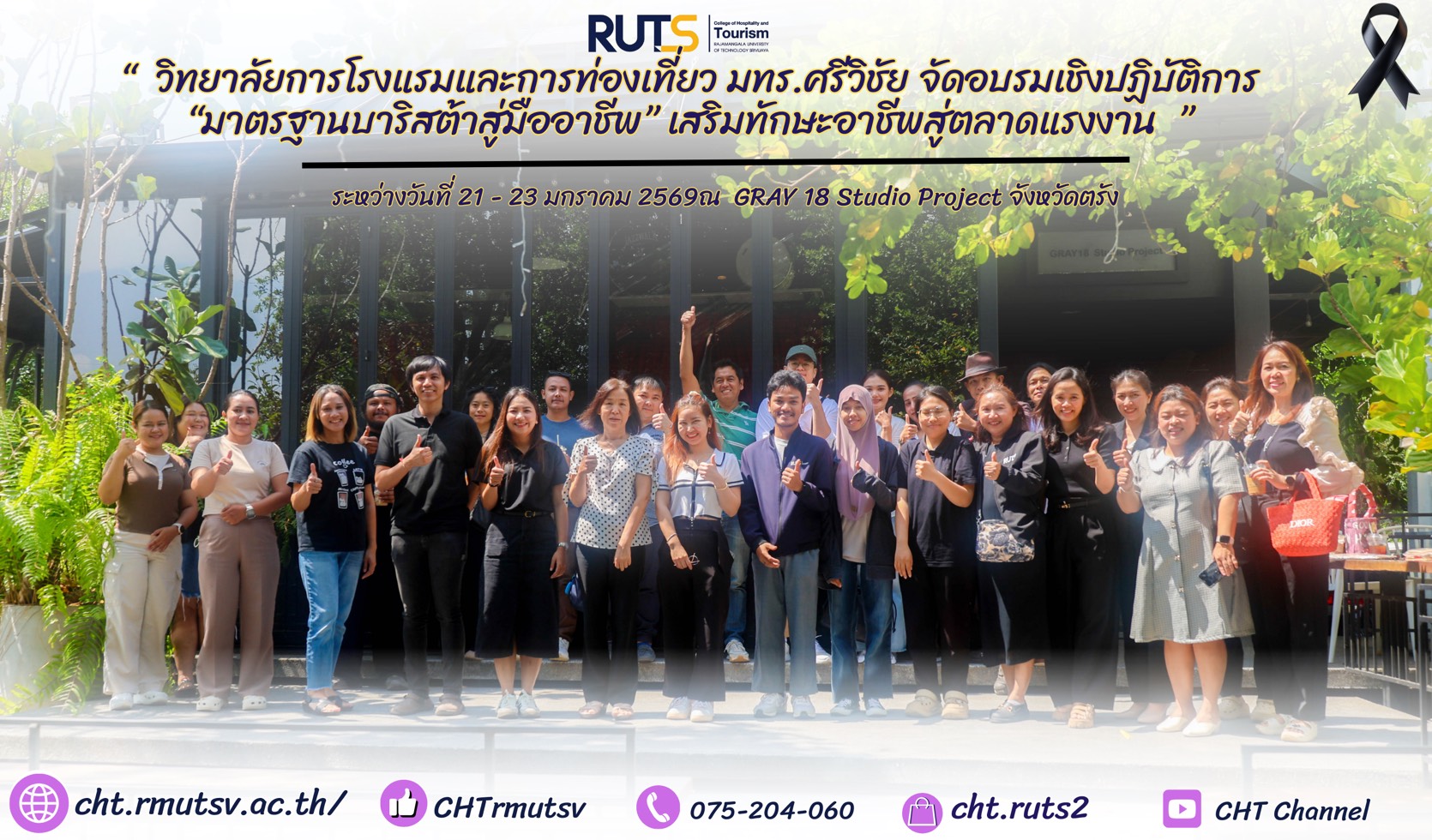 ระหว่างวันที่ 21 – 23 มกราคม 2568 ณ GRAY 18 Studio Project จังหวัดตรัง วิทยาลัยการโรงแรมและการท่องเที่ยว มหาวิทยาลัยเทคโนโลยีราชมงคลศรีวิชัย วิทยาเขตตรัง จัดอบรมเชิงปฏิบัติการ หลักสูตรมาตรฐาน “บาริสต้าสู่มืออาชีพ” ภายใต้โครงการ “จากวิกฤติสู่การปรับตัว : การพัฒนาการท่องเที่ยวทางทะเลอ่าวไทย–อันดามันคุณภาพสูง ด้วยการพัฒนาระบบนิเวศการเรียนรู้ การจัดการสมัยใหม่ เทคโนโลยี และนวัตกรรม”