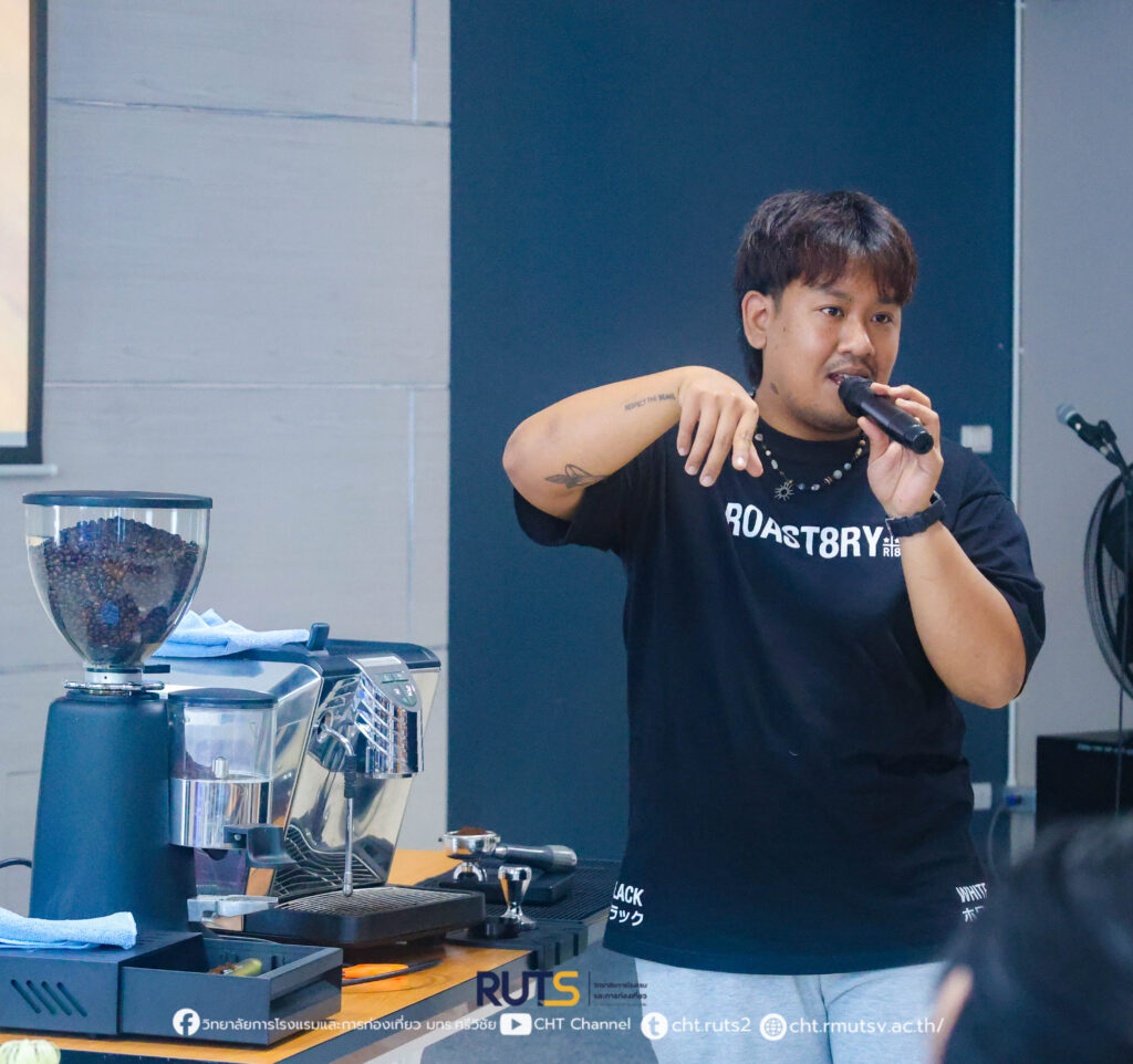 ศิษย์เก่าจากวิทยาลัยการโรงแรมและการท่องเที่ยว ผู้มากประสบการณ์ด้านงานกาแฟและเครื่องดื่ม มาเป็นวิทยากรถ่ายทอดความรู้และประสบการณ์จริงให้แก่นักศึกษา โดยบรรยายในหัวข้อ ประเภทต่าง ๆ ของกาแฟ อุปกรณ์ในการทำกาแฟ พร้อมทั้งจัดกิจกรรม Workshop เทคนิคการทำลาเต้อาร์ต เพื่อให้นักศึกษาได้ฝึกปฏิบัติจริงอย่างใกล้ชิด