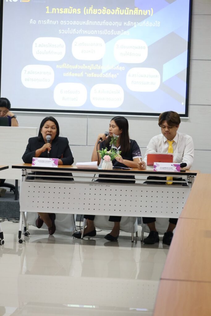 ช่วงท้ายของกิจกรรมเป็นการเปิดเวที ถาม–ตอบ เพื่อให้ผู้เข้าร่วมได้ซักถาม แลกเปลี่ยนความคิดเห็น และร่วมกันเสนอแนวทางในการพัฒนางานด้านทุนการศึกษา อันจะนำไปสู่การเพิ่มโอกาสทางการศึกษาและการพัฒนาศักยภาพนักศึกษาอย่างเป็นรูปธรรมต่อไป