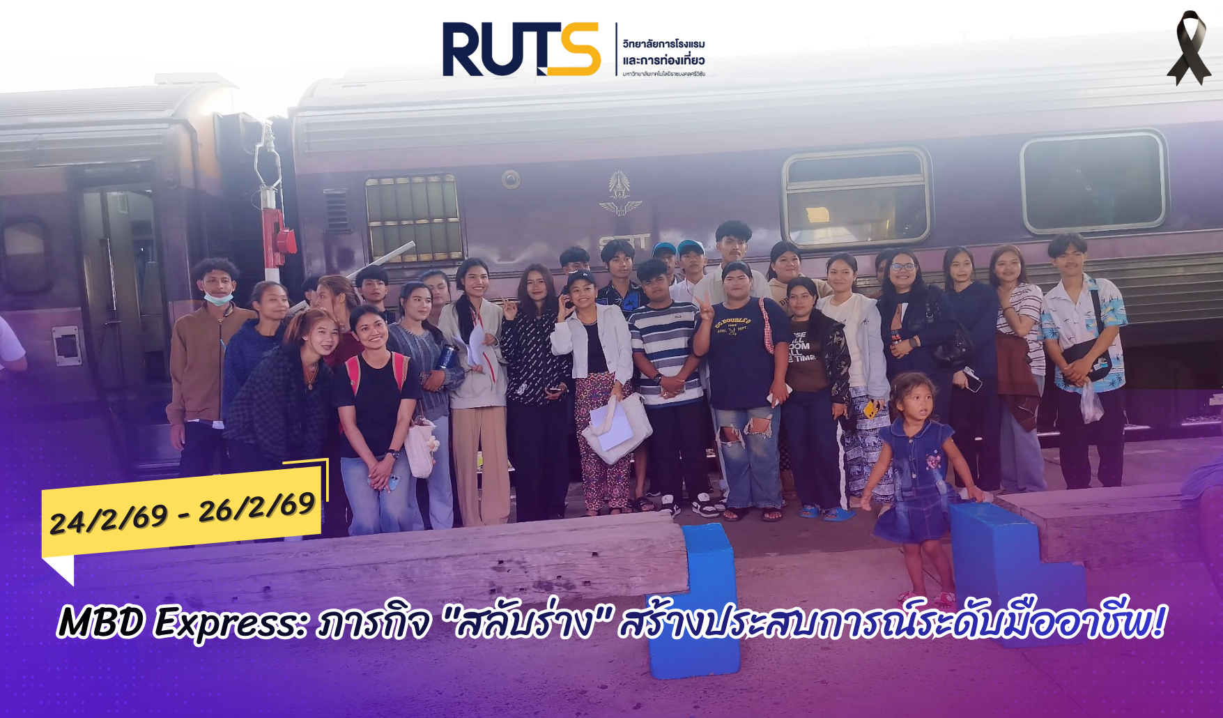 ตรัง – กรุงเทพฯ – สมุทรปราการ (24-26 ก.พ. 69) – เมื่อการฝึกงานไม่ได้มีแค่ในห้องเรียน ความตื่นเต้นจึงเริ่มต้นขึ้นบนรางรถไฟ! สาขาวิชาการจัดการและการพัฒนาธุรกิจ (MBD) จัดทริปสุดพิเศษ เปลี่ยนโหมดจากรถตู้แบบเดิมๆ มาเป็นการเดินทางสุดคลาสสิกด้วยรถไฟมุ่งหน้าสู่ สถานีกลางกรุงเทพอภิวัฒน์