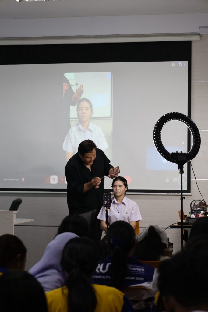 กิจกรรมดังกล่าวเป็นส่วนหนึ่งของรายวิชาสัมมนาสำหรับการท่องเที่ยว จัดขึ้น ภายใต้การดูแลของ อาจารย์อมรรัตน์ สุทธิธรรมานนท์ อาจารย์ประจำสาขาวิชาการท่องเที่ยวและการบริการ โดยมีนักศึกษาจาก หลักสูตรศิลปศาสตรบัณฑิต สาขาวิชาการท่องเที่ยวและการบริการ เข้าร่วมกิจกรรมเป็นจำนวนมาก บรรยากาศเต็มไปด้วยความสนใจและการมีส่วนร่วมของนักศึกษาในการพัฒนาทักษะด้านบุคลิกภาพเพื่อเตรียมความพร้อมสู่สายอาชีพในอนาคต การจัดกิจกรรมครั้งนี้สะท้อนถึงแนวทางการจัดการเรียนการสอนที่มุ่งเน้นการเรียนรู้จากประสบการณ์จริง ควบคู่กับการพัฒนาบุคลิกภาพและทักษะวิชาชีพ เพื่อเสริมสร้างความมั่นใจและศักยภาพของนักศึกษาให้สามารถก้าวสู่การเป็นบุคลากรคุณภาพในอุตสาหกรรมท่องเที่ยวและบริการได้อย่างมีประสิทธิภาพ