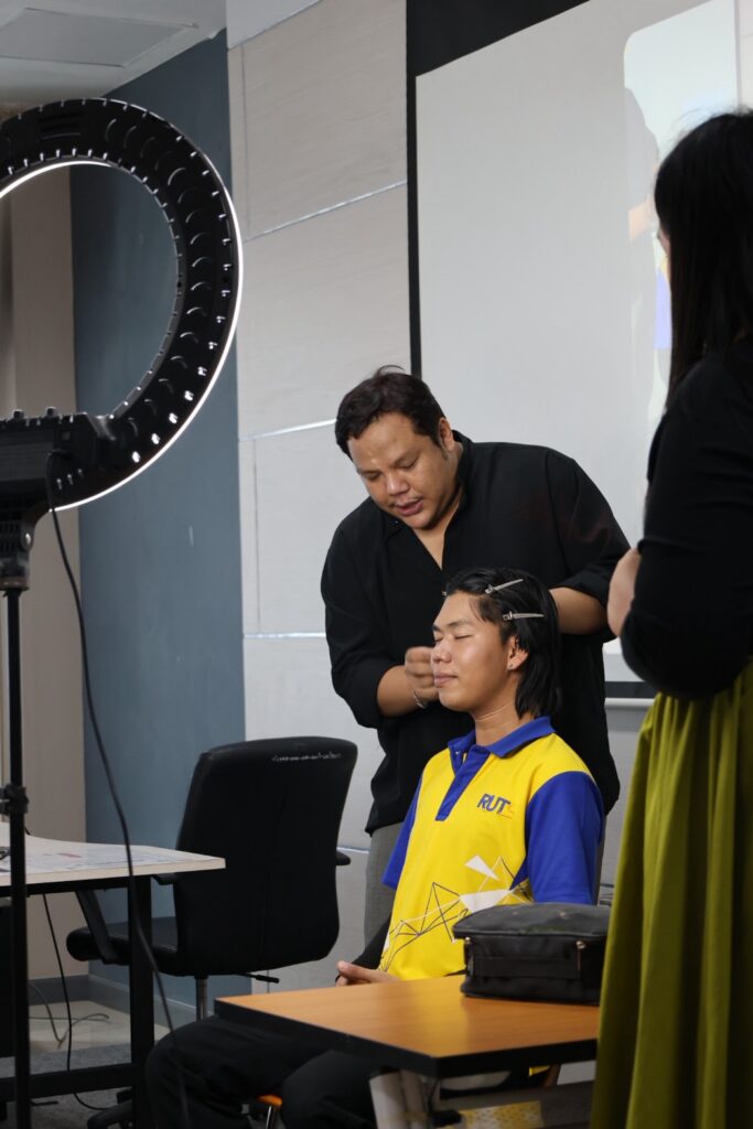 การอบรมครั้งนี้ได้รับเกียรติจาก คุณดนุพล สัญจร ช่างแต่งหน้ามืออาชีพ มาเป็นวิทยากรถ่ายทอดความรู้ เทคนิคการแต่งหน้าเพื่อเสริมบุคลิกภาพ พร้อมสาธิตขั้นตอนการแต่งหน้าอย่างถูกต้องและเหมาะสมกับการทำงานจริง เปิดโอกาสให้นักศึกษาได้ฝึกปฏิบัติและเรียนรู้จากประสบการณ์ตรง