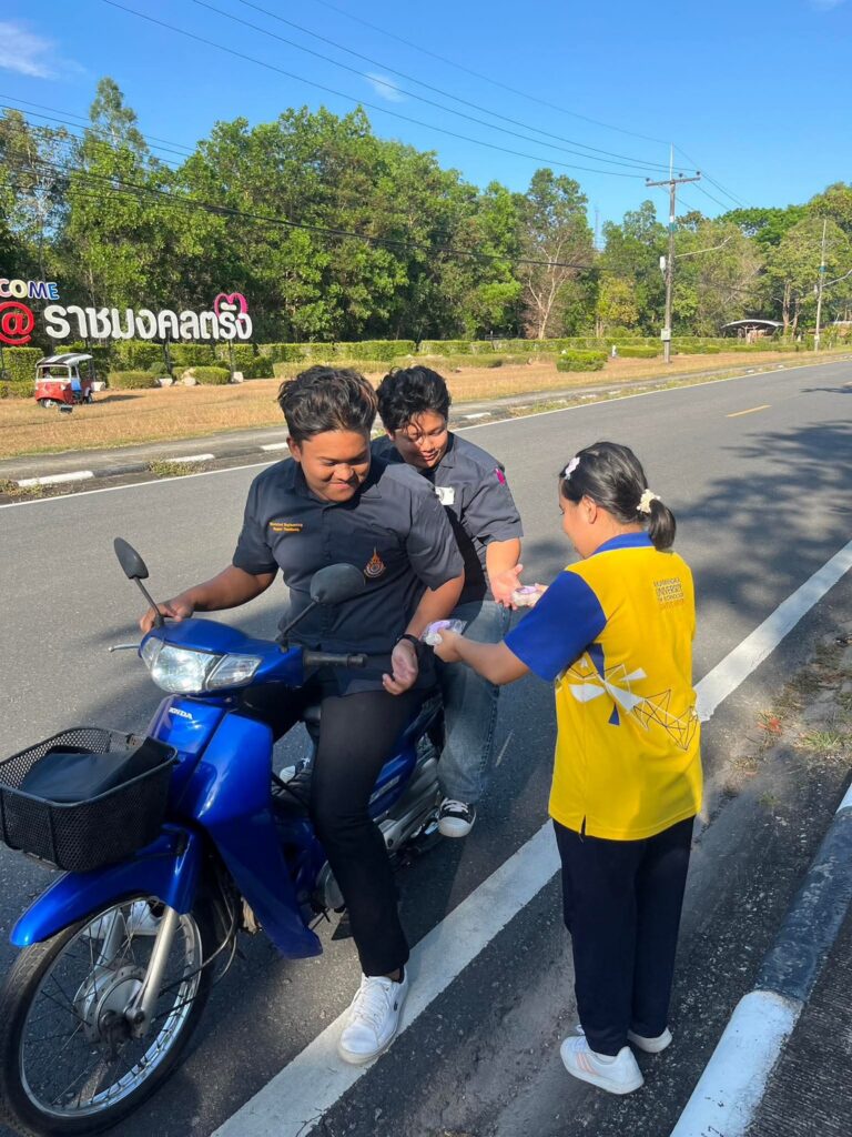 วันที่ 16 มีนาคม 2569 นักศึกษาหลักสูตรศิลปศาสตรบัณฑิต สาขาวิชาการท่องเที่ยวและการบริการ ชั้นปีที่ 2 วิทยาลัยการโรงแรมและการท่องเที่ยว มหาวิทยาลัยเทคโนโลยีราชมงคลศรีวิชัย ได้จัดกิจกรรม แจกจ่ายขนมหวานเพื่อร่วมแบ่งปันในช่วงเดือนรอมฎอน ณ บริเวณเกาะชะนี เพื่อร่วมส่งต่อความสุขและสร้างบรรยากาศแห่งการแบ่งปันให้กับประชาชน ที่สัญจรผ่านในพื้นที่ ซึ่งกิจกรรมดังกล่าวเป็นส่วนหนึ่งของการเรียนการสอนในรายวิชา การจัดการกิจกรรมสัมพันธ์ในงานบริการ ซึ่งมุ่งเน้นให้นักศึกษาได้เรียนรู้ผ่านการลงมือปฏิบัติจริง ฝึกทักษะการวางแผน การบริหารจัดการกิจกรรม การทำงานเป็นทีม ตลอดจนการสร้างความสัมพันธ์อันดีระหว่างสถาบันการศึกษากับชุมชน