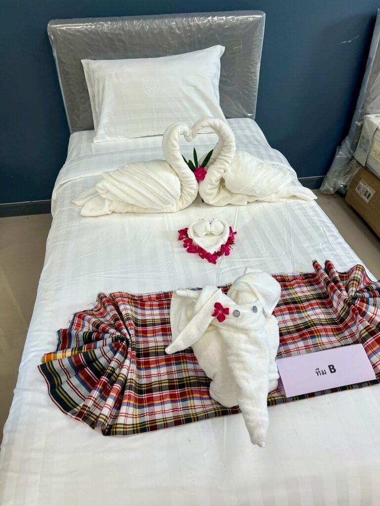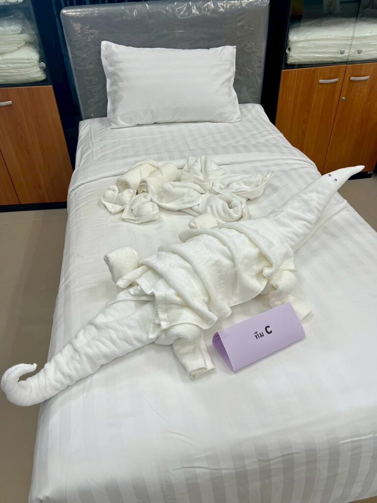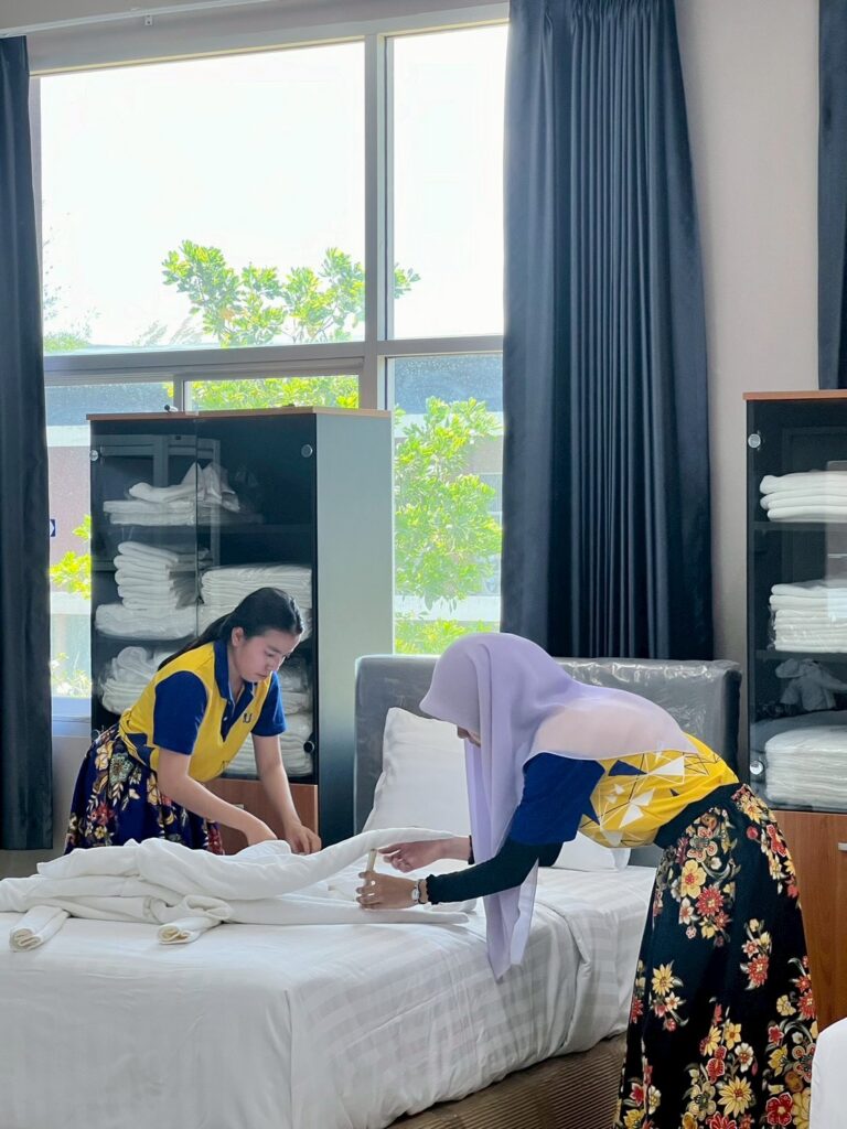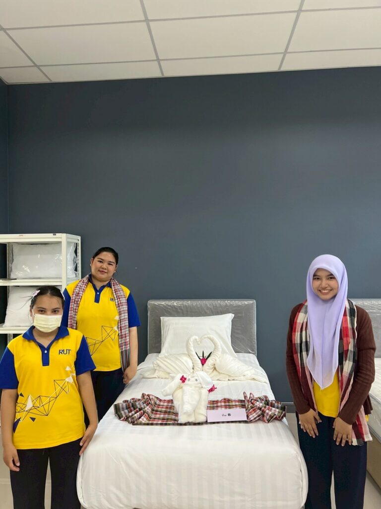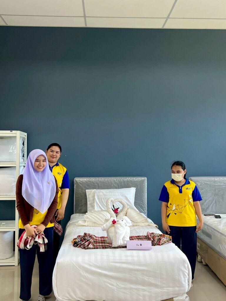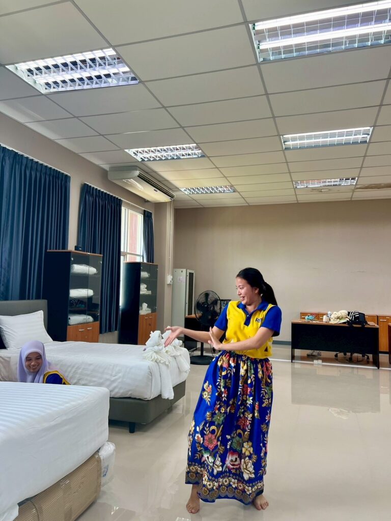 ภายในกิจกรรม นักศึกษาได้ฝึกปฏิบัติการปูเตียงและการตกแต่งห้องพักในระดับที่มากกว่ามาตรฐานทั่วไป โดยผสมผสานความคิดสร้างสรรค์เข้ากับอัตลักษณ์ทางวัฒนธรรม ถ่ายทอดออกมาเป็น “ประสบการณ์” ที่สามารถสื่อสารเรื่องราวและสร้างความประทับใจแก่ผู้เข้าพักได้อย่างมีเอกลักษณ์ พร้อมทั้งสอดแทรกแนวคิด Eco-Design ที่คำนึงถึงการใช้ทรัพยากรอย่างคุ้มค่า ลดผลกระทบต่อสิ่งแวดล้อม และส่งเสริมการท่องเที่ยวอย่างยั่งยืน