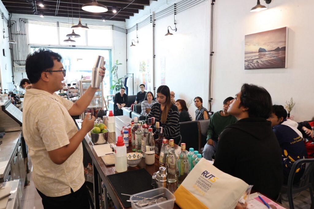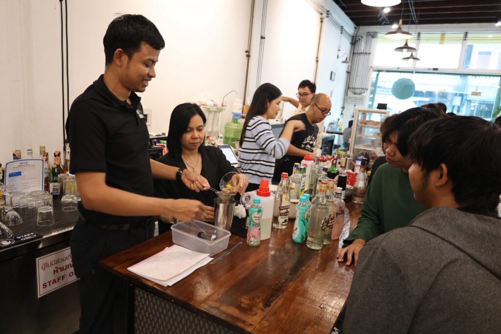 ภายในโครงการ ผู้เข้าร่วมอบรมได้รับการถ่ายทอดความรู้ทั้งภาคทฤษฎีและภาคปฏิบัติ ครอบคลุมเทคนิคพื้นฐานของบาร์เทนเดอร์ ได้แก่ การบด การกวน การเขย่า และการคน รวมถึงเทคนิคการผสมเครื่องดื่ม การใช้เครื่องมือบาร์เทนเดอร์อย่างถูกต้อง ตลอดจนกิจกรรมเชิงปฏิบัติการ (Workshop) ในการออกแบบและสร้างสรรค์เมนูเครื่องดื่ม