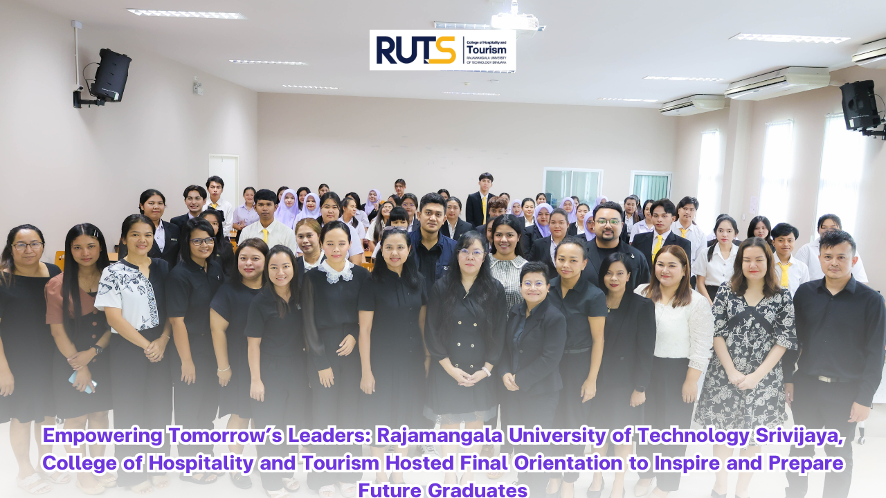 The College of Hospitality and Tourism at Rajamangala University of Technology Srivijaya, Trang Campus,organized the student final orientation on October 27, 2025, at Yatalay Room. The event was honored byAssistant Professor Fapailai Taweesinsopa, the Director of the College of Hospitality and Tourism, who presided over the opening ceremony.