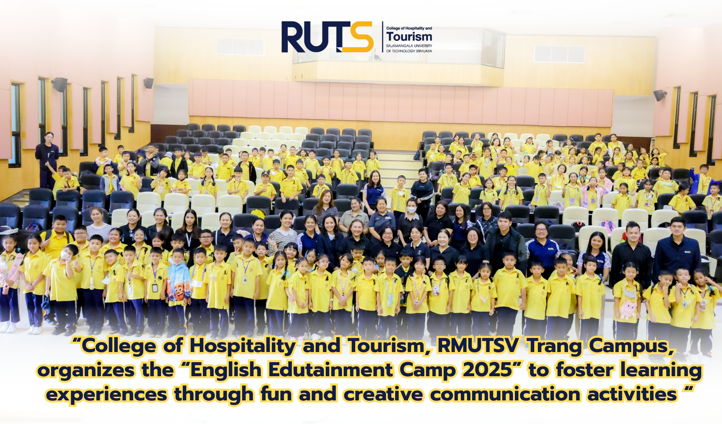 On November 7, 2025, at the Chalermphrakiat Building and Trang Aquarium, Rajamangala University of Technology Srivijaya (RUTS), Trang Campus, English for International Communication Program, College of Hospitality and Tourism (CHT), organized the English Edutainment Camp 2025. The camp aimed to promote and enhance English language skills for primary school students (Grades 1–4) through fun, engaging, and interactive learning activities.