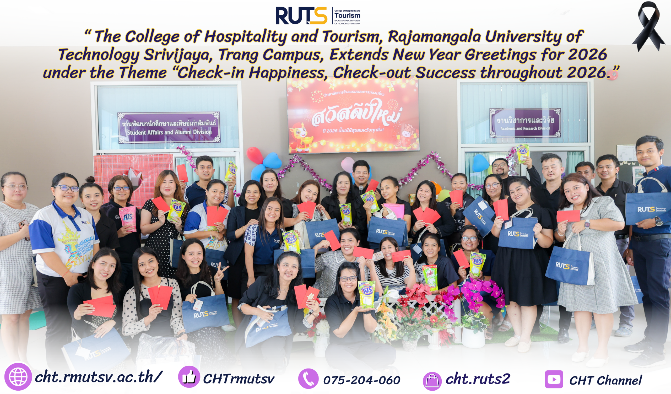 The College of Hospitality and Tourism organized the annual Happy New Year 2026 event to celebrate the beginning of the new year in warmth, enjoyment, and collegiality atmosphere. The event was honored by the presence of Assistant Professor Fapilai Thawisinsopa, Director of the College of Hospitality and Tourism, who presided over the ceremony, delivered New Year greetings, and offered encouragement to the executive administrators, faculty members, and staff.