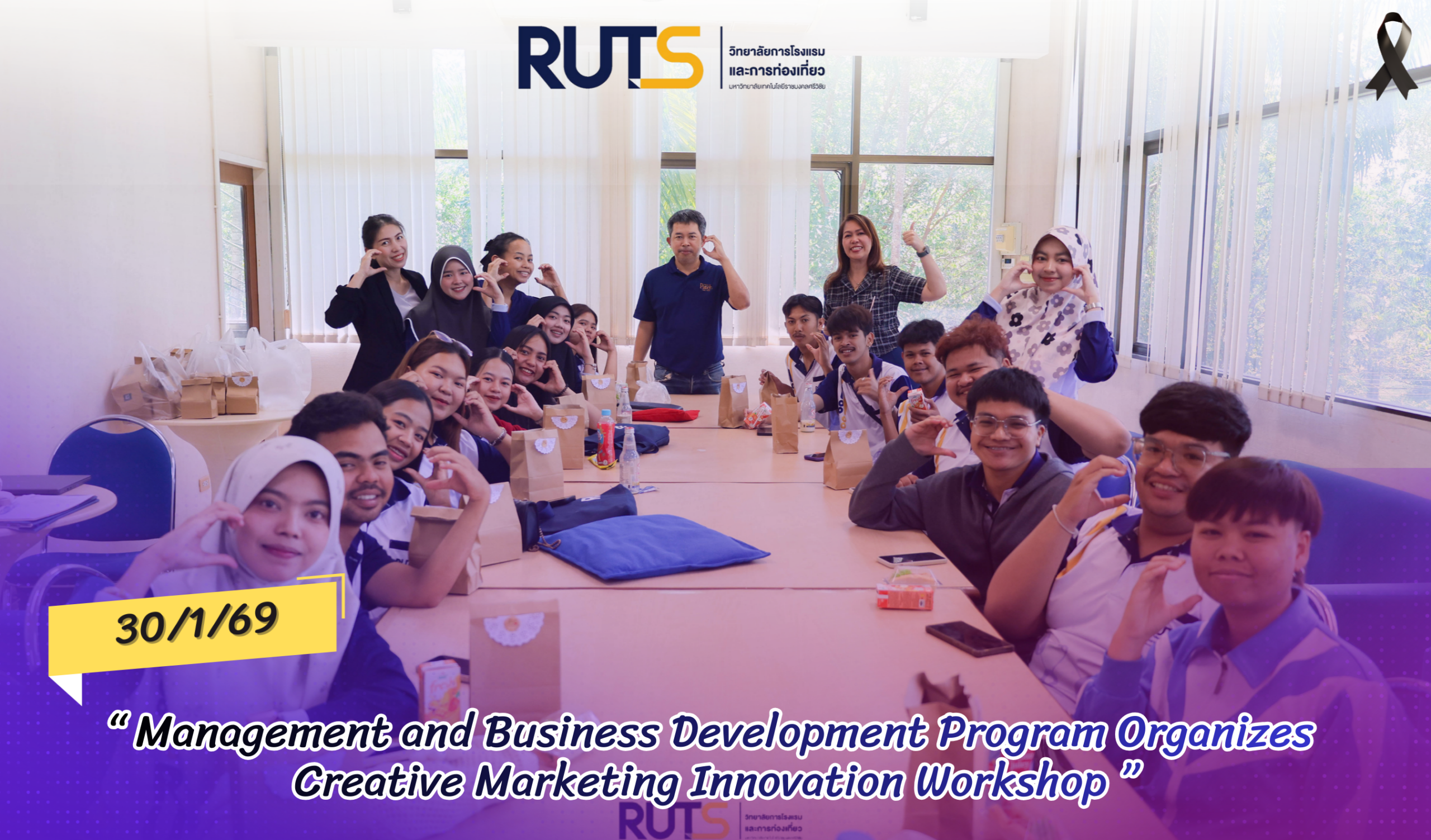 The Management and Business Development Program (MBD), College of Hospitality and Tourism (CHT), Rajamangala University of Technology Srivijaya (RUTS), Trang Campus, organized the skill development and business integration for new era entrepreneurship project through the Creative Marketing Innovation workshop. The workshop provided with the modern marketing knowledge and essential practical skills to students.