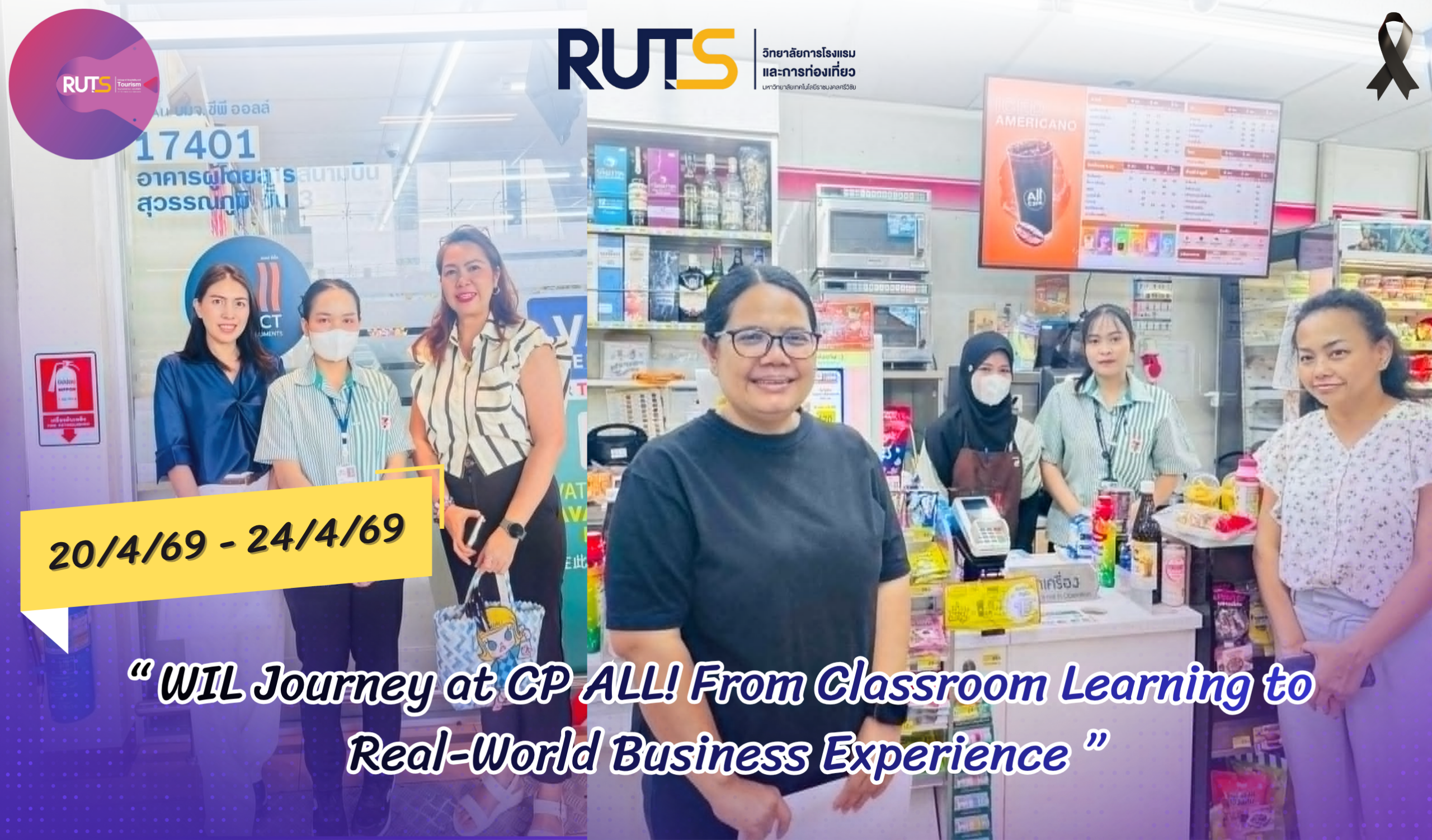 From 20–24 April 2026, lecturers from the College of Hospitality and Tourism, Rajamangala University of Technology Srivijaya, Trang Campus, led by Assistant Professor Nuchanat Tubkrut, Dr. Chayanun Khaoplod, Dr. Jatuporn Hokta, and Ms. Kittima Hemjinda, conducted supervisory visits for 67 Business Administration students from the Management and Business Development Program (Plan B) during their professional internship at CP ALL Public Company Limited.